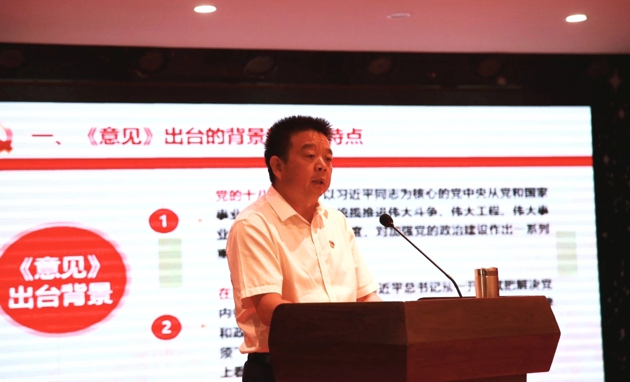 在第二個環(huán)節(jié),公司黨委書記王宏偉現(xiàn)場為大家上了一堂精彩的黨課。王宏偉對中共中央印發(fā)的《關于加強黨的政治建設的意見》進行了講解和宣貫,要求全體黨員思考企業(yè)的核心競爭力和自己的“兩把刷子”,同時號召全體員工將做好自己作為對政治建設最大的貢獻。在隨后的第三環(huán)節(jié),王宏偉帶領全體黨員重溫了入黨誓詞。