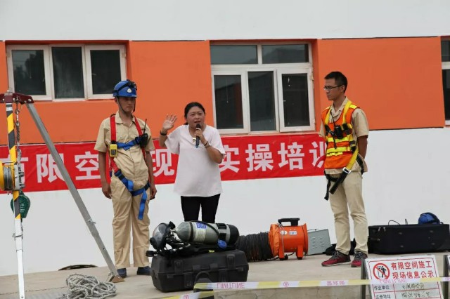 最后,在有限空間培訓(xùn)現(xiàn)場(chǎng),北京市勞動(dòng)保護(hù)科學(xué)研究所的秦妍老師針對(duì)有限空間現(xiàn)場(chǎng)監(jiān)督、檢測(cè)、通風(fēng)、防護(hù)以及搶險(xiǎn)救援等方面,開展了現(xiàn)場(chǎng)演示和授課。大家頭頂烈日,認(rèn)真聆聽,秩序井然。