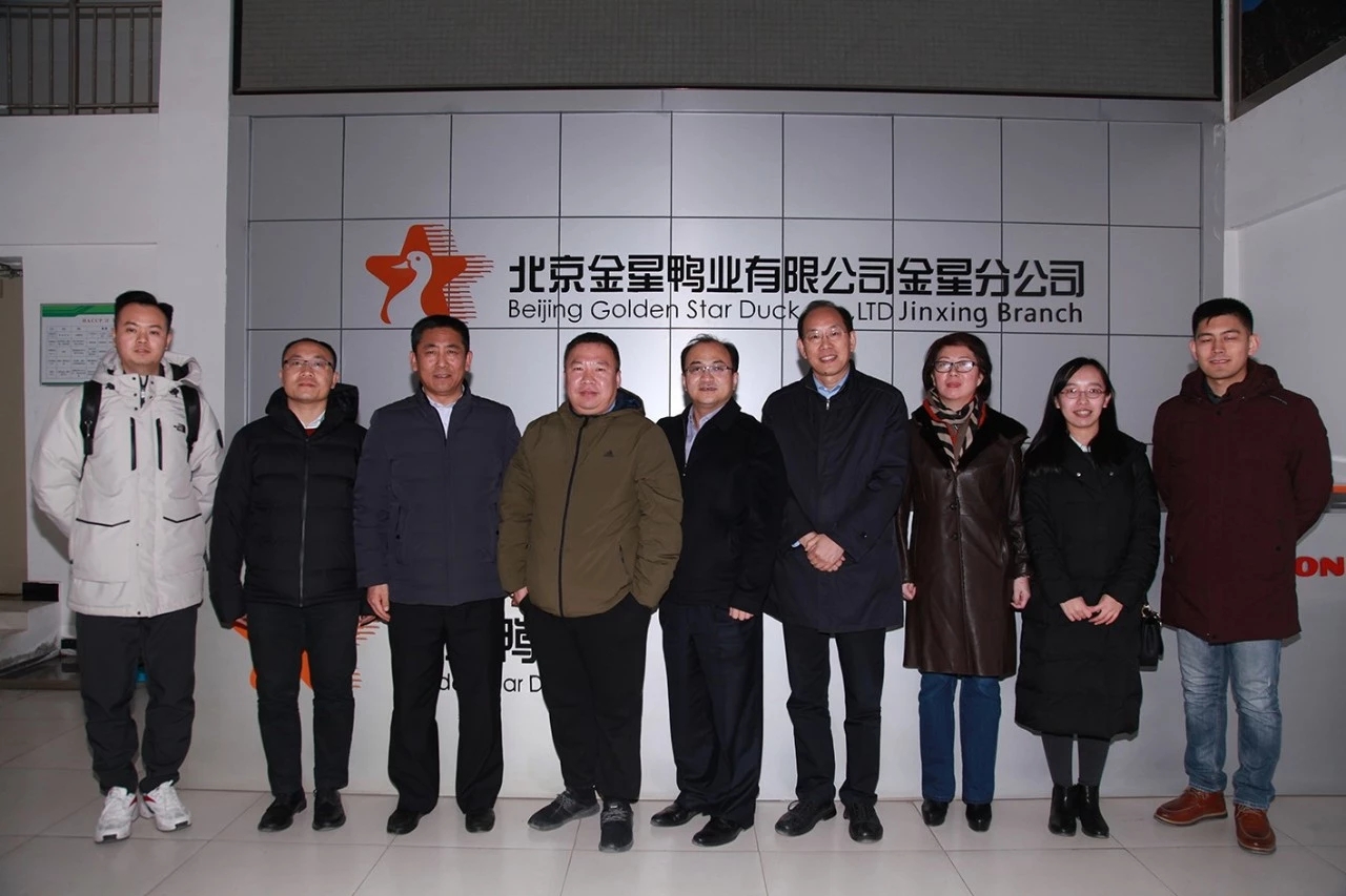1月24日,農(nóng)業(yè)農(nóng)村部農(nóng)墾局產(chǎn)業(yè)發(fā)展處處長王林昌、經(jīng)濟發(fā)展中心處長王生、韓學(xué)軍一行蒞臨金星鴨業(yè),調(diào)研產(chǎn)品質(zhì)量安全轉(zhuǎn)型升級工作開展情況。首農(nóng)食品集團食品安全辦公室主任吳遠馨、副主任苗明,金星鴨業(yè)總經(jīng)理王凱,副總經(jīng)理王曉東等陪同調(diào)研。