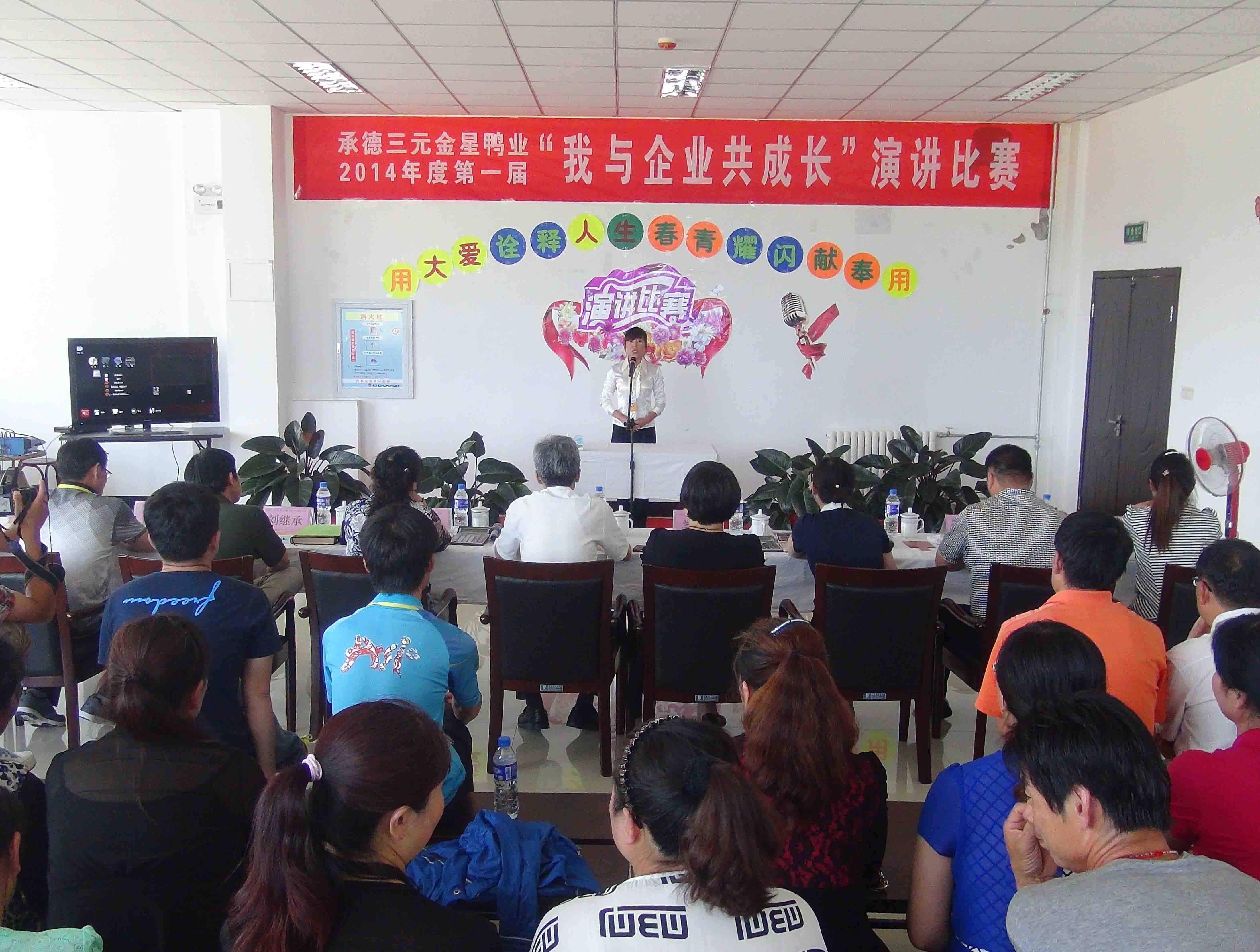 ? ? ? ? 6月18日下午,承德鴨業(yè)第一屆“我與企業(yè)共成長”演講比賽在職工之家拉開序幕。演講以“用大愛詮釋人生,用奉獻閃耀青春”為主題,吸引了來自不同崗位共21位選手參加。公司黨委書記、副總經(jīng)理胡勝強帶領人力資源部和綜合辦公室相關人員一起觀看了演講比賽。