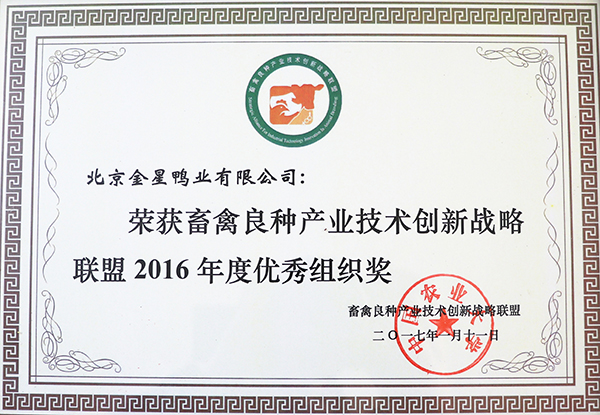 自2016年年初加入聯(lián)盟以來,金星鴨業(yè)積極支持參與聯(lián)盟工作,榮獲“2016年度優(yōu)秀組織獎”。作為新成員,公司將在“十三五”期間充分利用聯(lián)盟資源,深入開展產(chǎn)學(xué)研聯(lián)合創(chuàng)新,推動北京鴨育種事業(yè)快速發(fā)展。