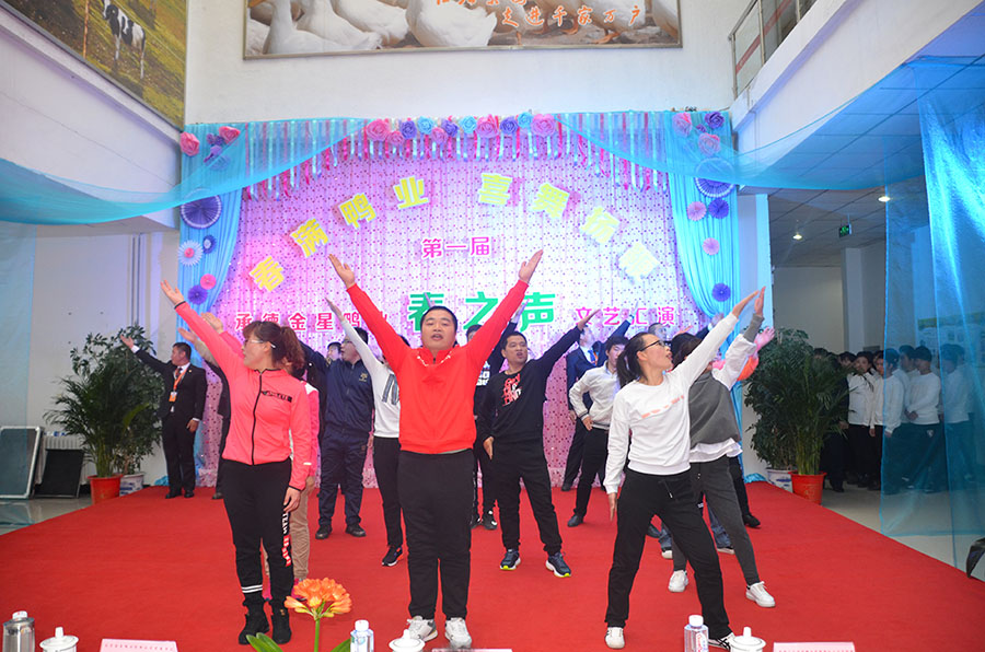 ? 演出結(jié)束后,雷坤石發(fā)表致辭,他表達(dá)了對(duì)公司全體員工的感謝和美好祝愿!金星鴨業(yè)黨委書(shū)記王宏偉講話指出,在重壓力下,承德鴨業(yè)立足當(dāng)前,謀劃長(zhǎng)遠(yuǎn),克服了體制改革等一項(xiàng)項(xiàng)難題,困境中突圍,實(shí)現(xiàn)了轉(zhuǎn)型升級(jí)的跨越式發(fā)展,對(duì)此他給予肯定,同時(shí)祝愿2017年承德鴨業(yè)再創(chuàng)佳績(jī)。最后公司經(jīng)理史學(xué)蓮進(jìn)行總結(jié)講話,要求全體員工肩負(fù)“拼搏、鞏固、提升”的重任,共同努力,時(shí)刻踐行承諾:我的崗位我負(fù)責(zé),我在崗位您放心!