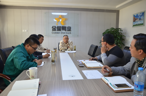 4月17日,東部直屬養(yǎng)殖公司召開緊急防疫會,各填鴨養(yǎng)殖基地及中鴨放養(yǎng)部主管人員參加,會議由吳志國主持。
