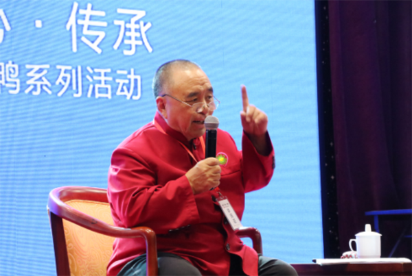 艾廣富結(jié)合自己的從業(yè)經(jīng)驗(yàn),向各位參會人員詳細(xì)講解了北京烤鴨的起源、發(fā)展和行業(yè)現(xiàn)狀,與會人員聽得仔細(xì)、記得認(rèn)真。講到高潮時(shí),臺下不時(shí)響起熱烈的掌聲。